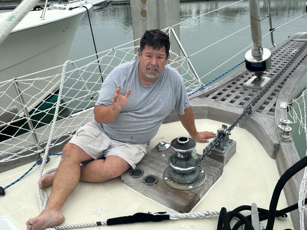 We finished out the month with getting some more fire damage repair work completed. We had Brad from Paradise yachts come out and measure for our new spinnaker sail and replace the lines that we lost in the fire. The weather would just not cooperate with us and getting him out. It was either way to windy or way too cold but it finally got warn enough with little wind for this to get done. Now we can get sailing again. This was holding us back since Sept as we weren't able to use the sails and you need those to move in the water and to get you going when the motor is not running.