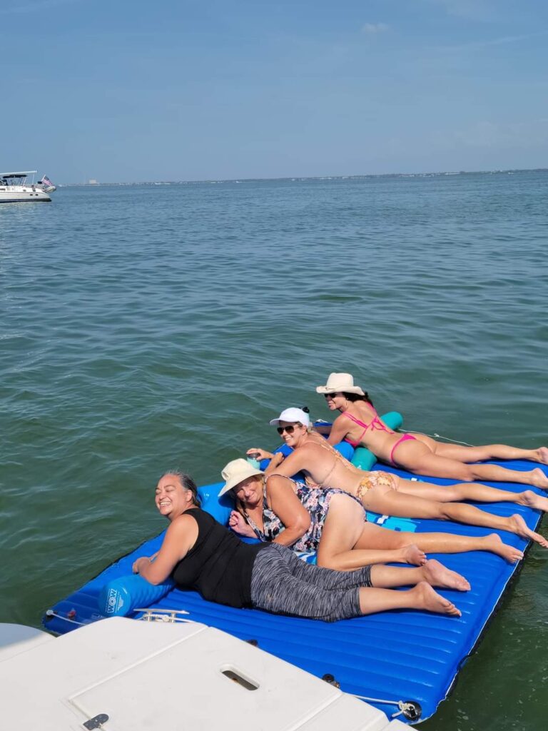 We went out with our dock friends for the day on their speed boat (3/6) and had a ton of laughs. The water in the gulf is still way to cold to go in at least for me. I was talked into joining the rest of the ladies on the water mat and while I froze it was a lot of fun.