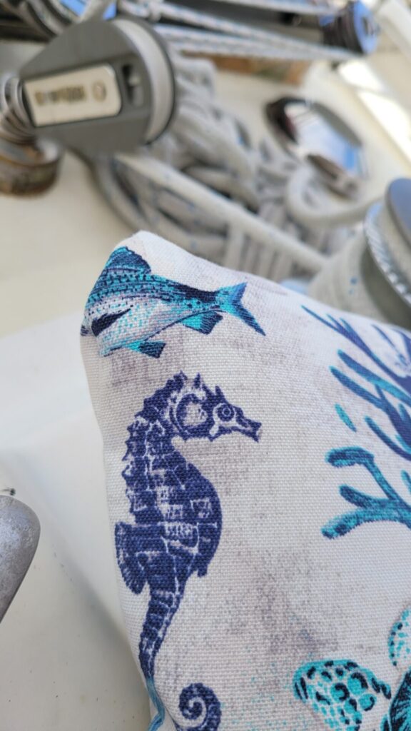 We were able to get water to the boat, installed the poop tank, installed a fully functioning toilet, installed counter tops in the galley, installed the water heater, installed more lights to the salon and the captain's quarters, added LED lights to the booze locker and under the cabinets in the galley, added the fill tube for the water to be brought into the boat from the deck above, took apart the windlass and inspected that for repairs, gave the boat some creature comforts of a seating in the cockpit with all new cushions, installed cushions in the settie and made a bunch of pillows for seating. We also installed a TV in the salon and new electric outlets in the Salon and master stateroom. Added beds to the captains quarters and blankets for the pups to sleep comfortably.